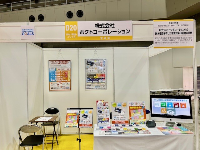 ホクトコーポレーションは”環境性・衛生性に優れた「洗える!印刷物」”というキャッチコピーのもと、耐水性のある様々な印刷物の制作提案、環境性・機能性・衛生性を付加した高機能印刷の製品製造開発を披露しています。