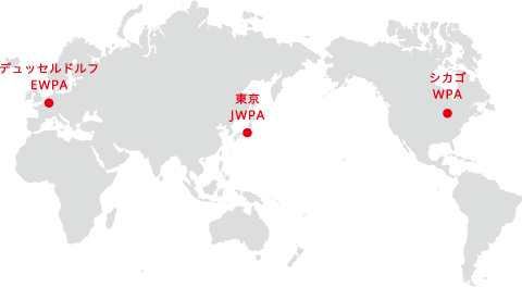 1993年9月、印刷業者40社、機材メーカー27社がシカゴに結集し、水なし印刷の採用を啓蒙する団体 WPA ( Waterless Printing Association ) が結成されました。団体はただちに水なし印刷実施のトレードマークをつくり、使用基準を明確にしました。水なし版を使い環境保全に積極的に取組み、しかも品質の高い印刷物を製造する印刷会社にしか使用許可を認めないという、実に厳しい使用基準でした。このトレードマークは、その後、水なし印刷を認証するウォーターレスマーク(バタフライマーク)へと変更されました。